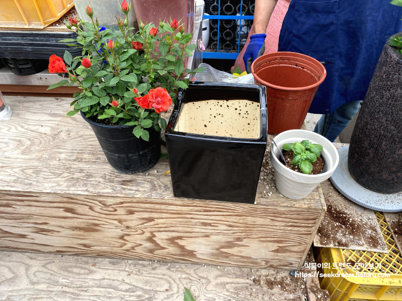 장미랑 스위트바질은 여기서 화분도 같이 구매했어요.