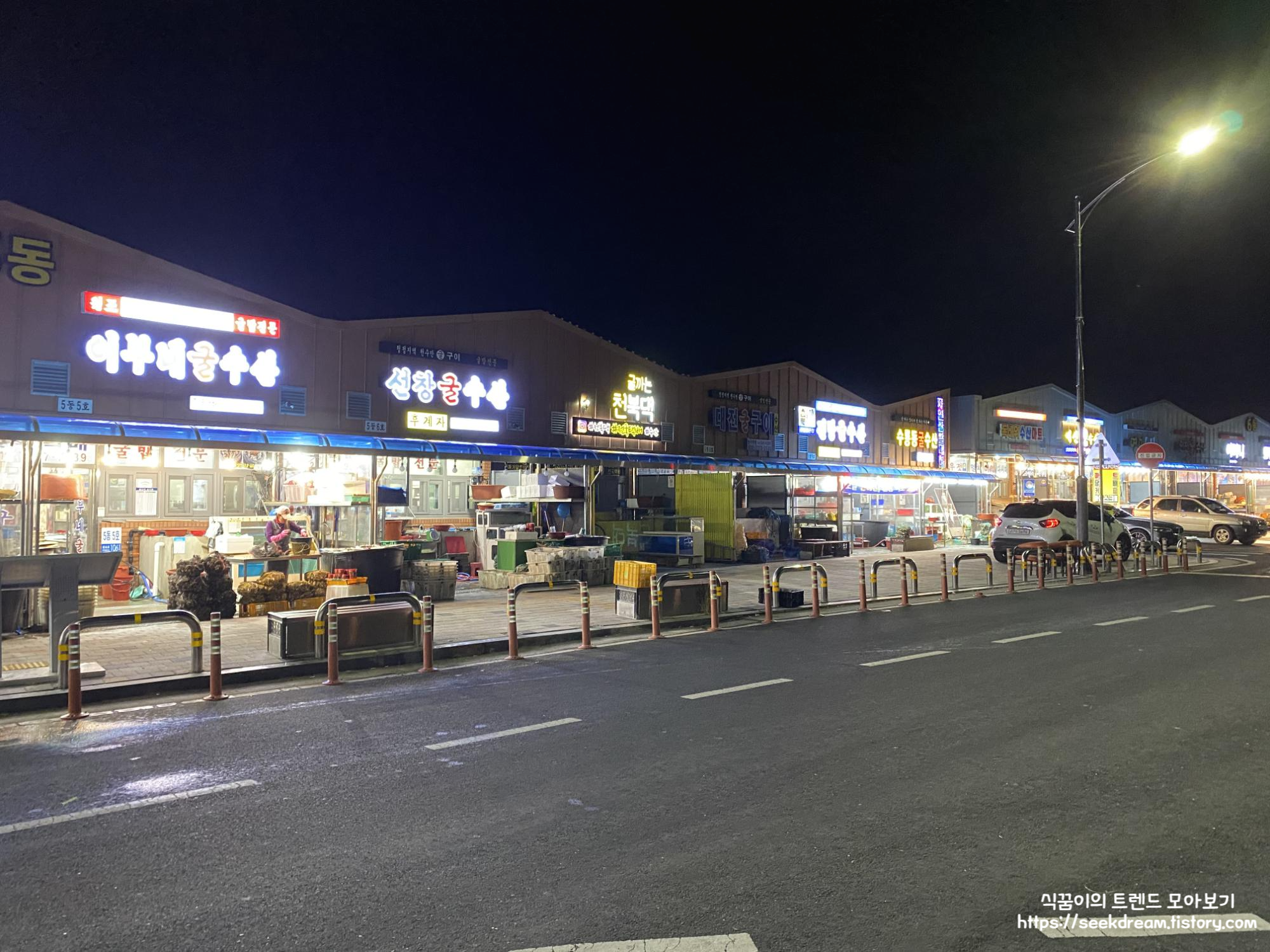 굴가게들이 옹기종기 모여있는게 신기해서 한장 찍었어요.